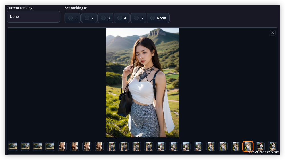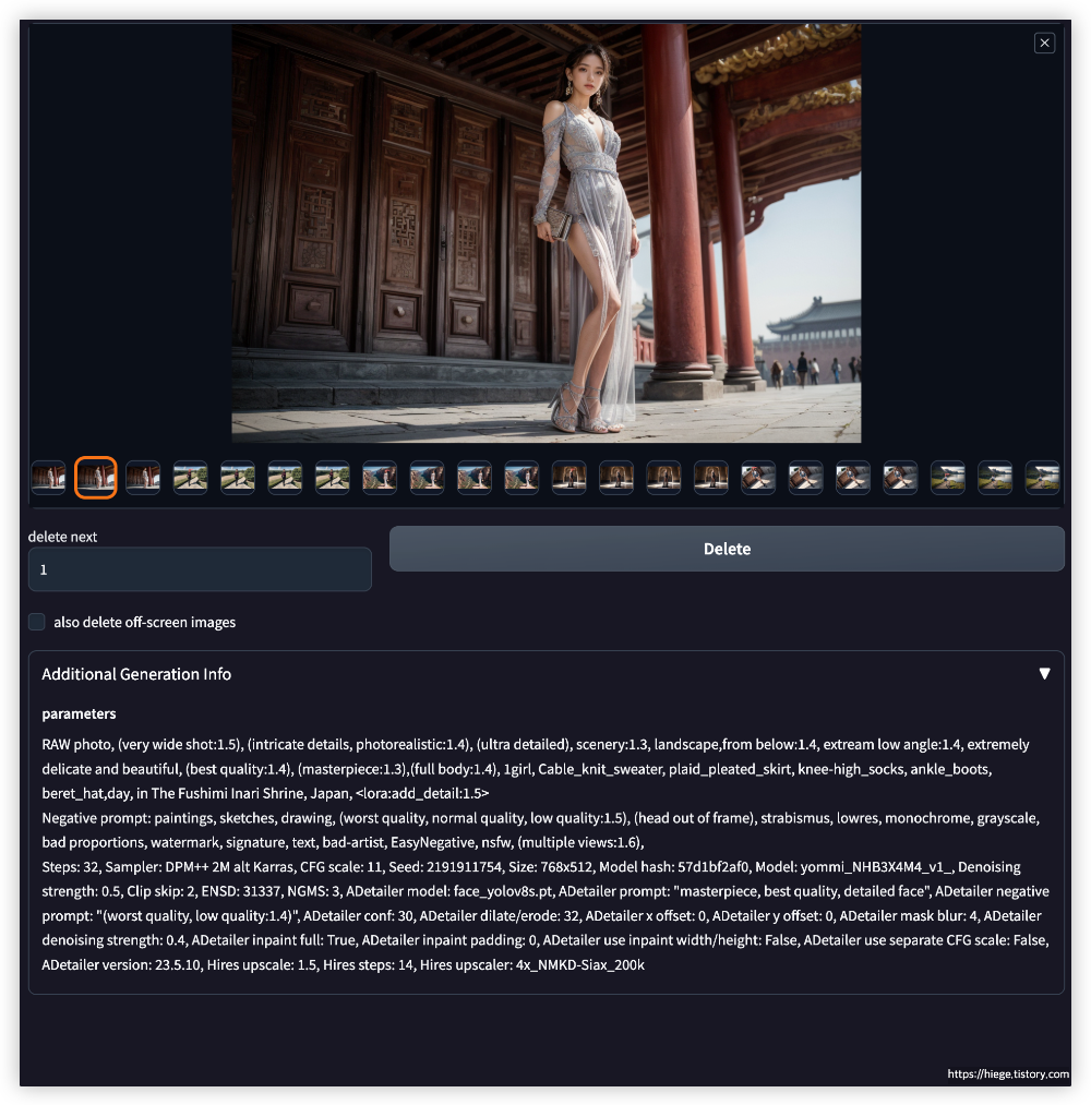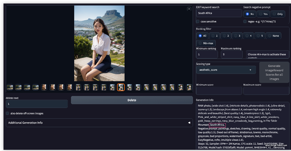 하나의 이미지를 선택하고 Generation info에서 "South Africa" 프롬이 들어간 걸 확인할 수 있어요.