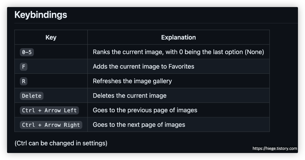 저는 다른 키가 적용되어 있어서 ctrl + Arrow Left를 사용할 수가 없네요. Webui -> Settings(설정) -> Image Browser으로 가봐야겠어요.