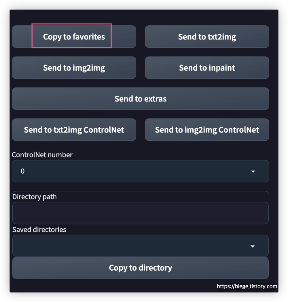 즐겨찾기로 보낼 이미지를 선택하고 아래로 스크롤다운 하면 오른쪽 이미지와 같은 버튼들이 있는데 "Copy to favorites" 누르면