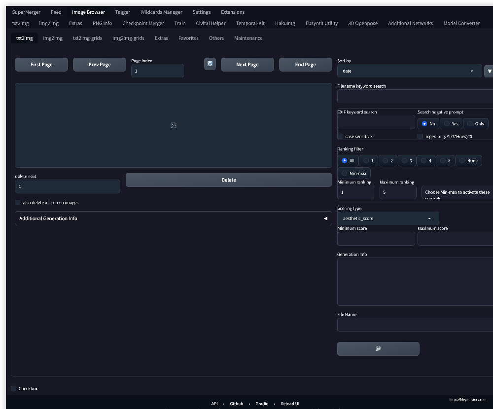 https://github.com/AlUlkesh/stable-diffusion-webui-images-browser.git