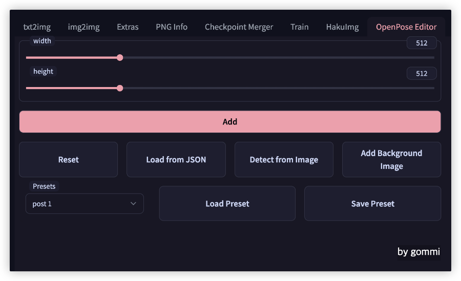 Openpose Editor for AUTOMATIC1111's stable-diffusion-webui - GitHub - fkunn1326/openpose-editor: Openpose Editor for AUTOMATIC1111's stable-diffusion-webui